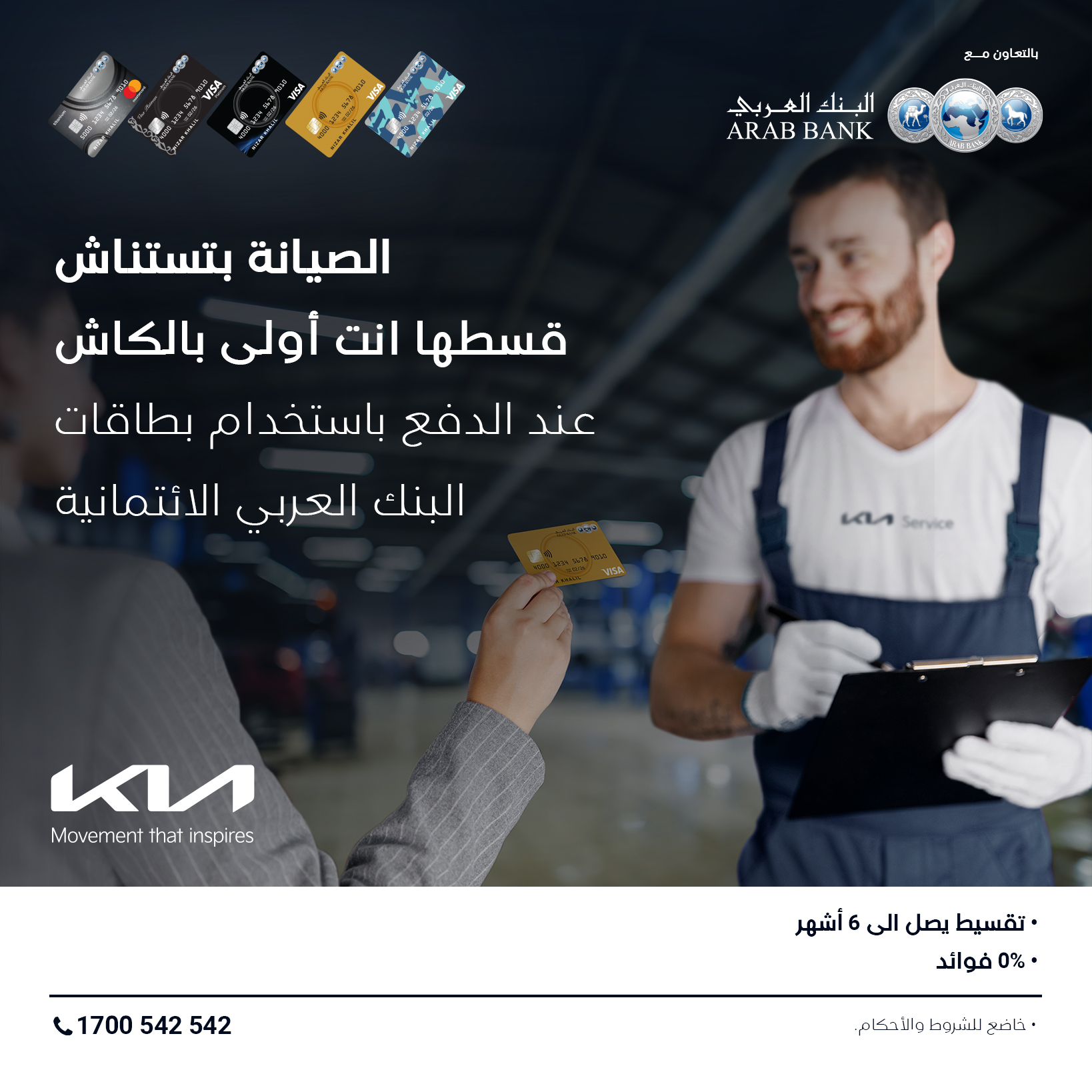 قسط صيانة سيارتك في مراكز الصيانة التابعة لكيا وادفع من خلال بطاقات البنك العربي الائتمانية على راحتك